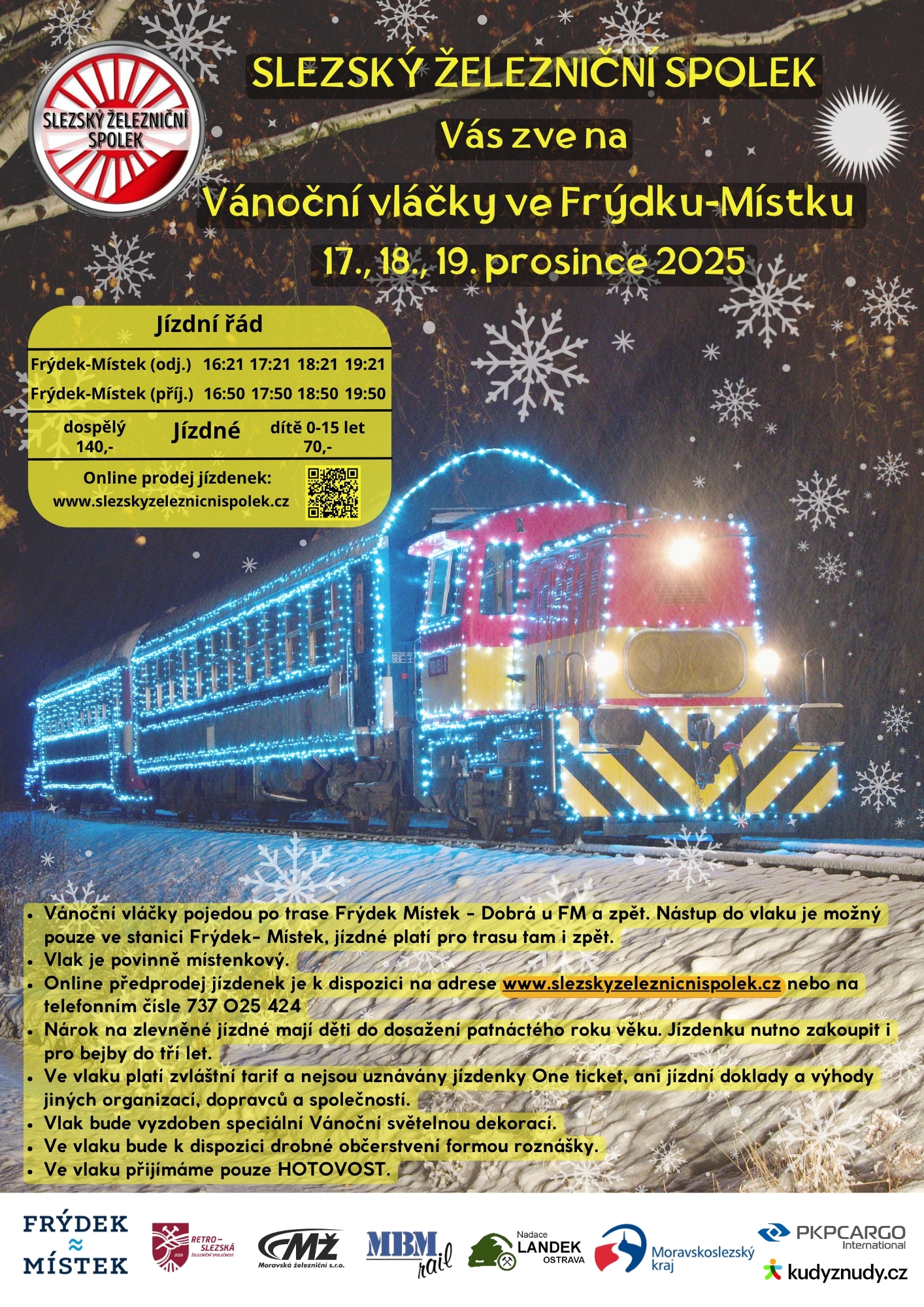 Upozorňujeme, že Vánoční vláčky jsou povinně místenkové, nástup je možný pouze ve stanici Frýdek- Místek a jízdenka platí pro jízdu tam i zpět.